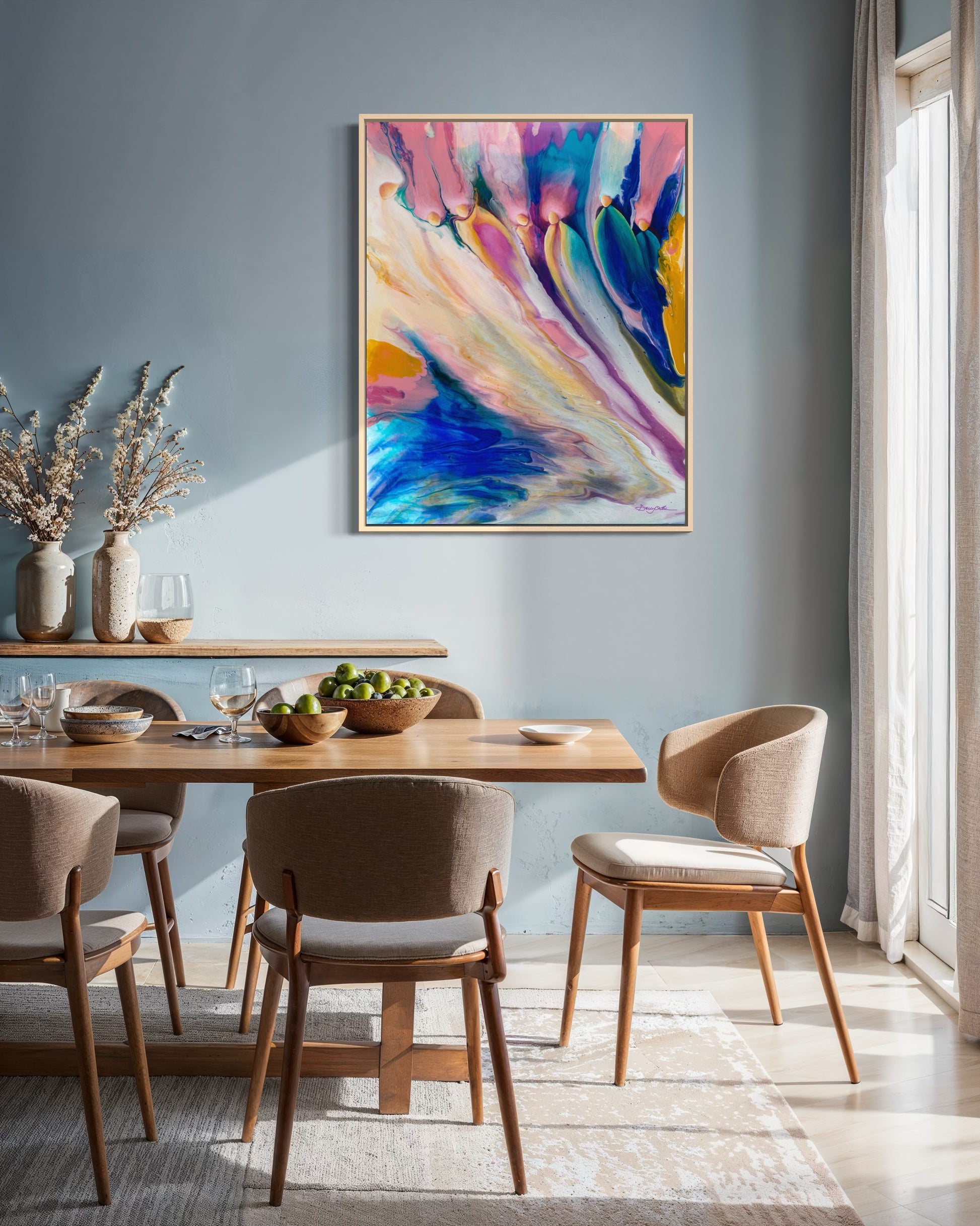 Fine art prints are available in framed canvas and museum-grade paper, each thoughtfully crafted to carry the essence and energy of the original. They are carefully produced, inspected, and shipped by my trusted fine art printer to ensure lasting beauty and exceptional quality.