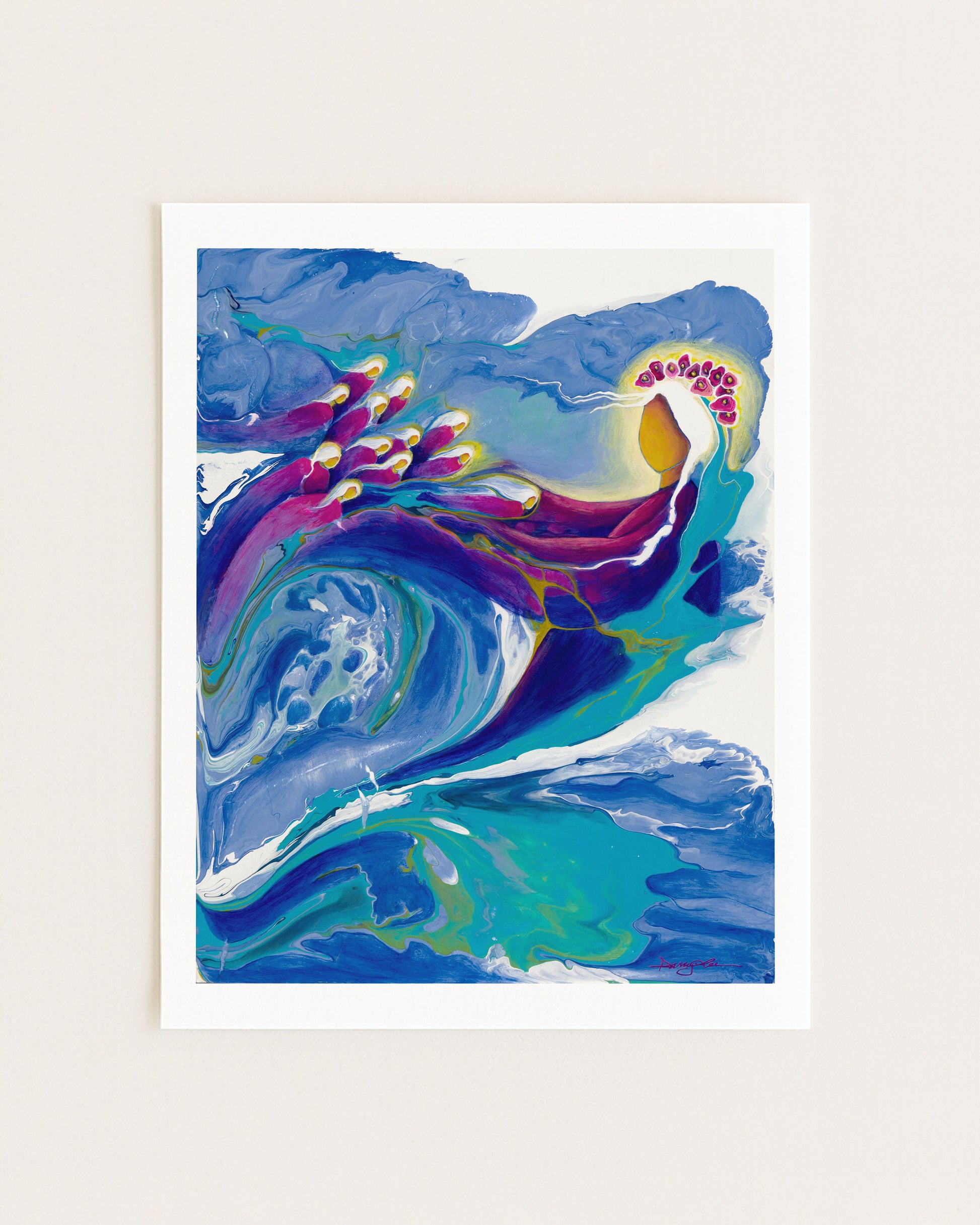 Though the original has found its forever home, its spirit lives on through fine art reproductions, each crafted to preserve the vibrancy, symbolism, and emotional resonance of the piece. Prints are available in framed canvas and museum-grade paper, and are carefully produced, inspected, and shipped by my trusted fine art printer to ensure lasting beauty and exceptional quality.