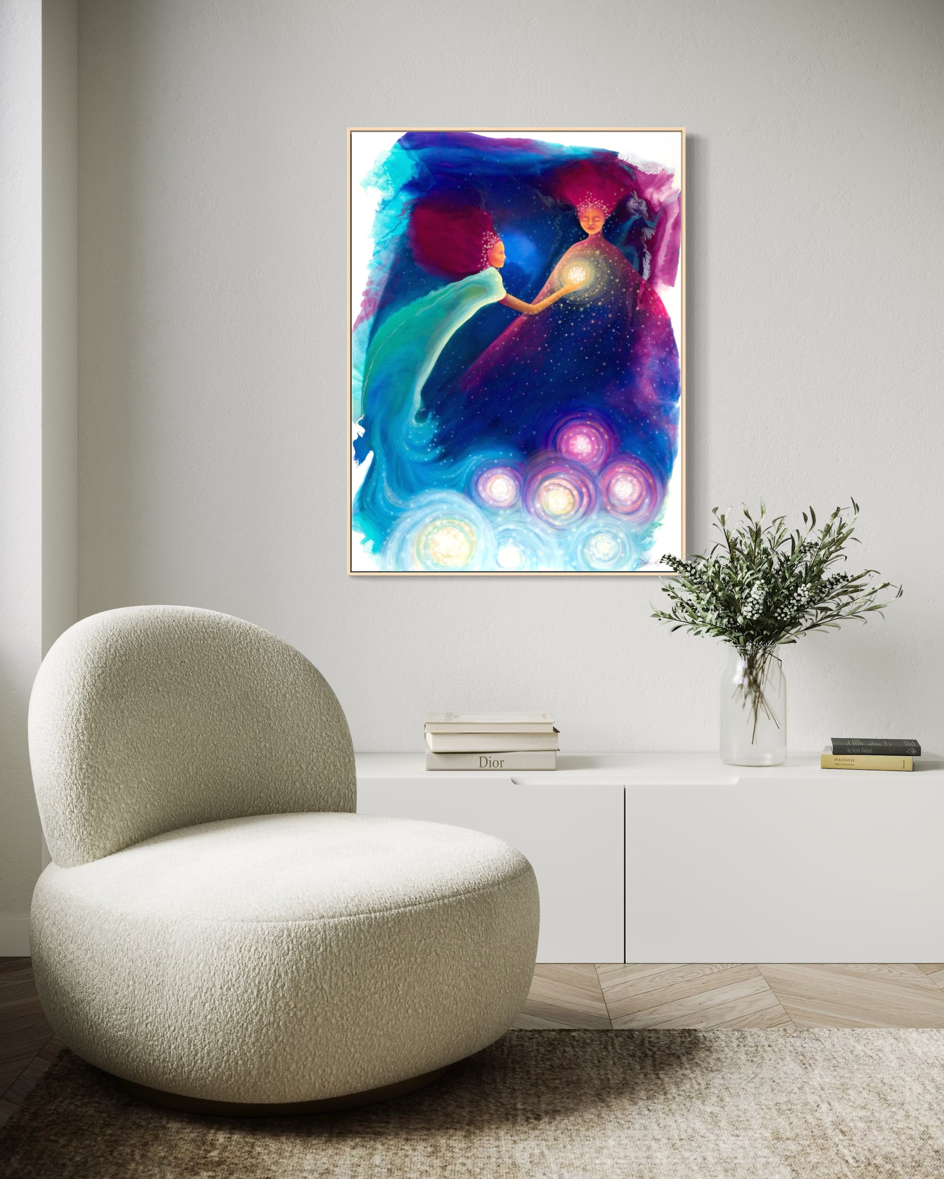 Fine art prints are available in framed canvas and museum-grade paper, each thoughtfully crafted to carry the essence and energy of the original. They are carefully produced, inspected, and shipped by my trusted fine art printer to ensure lasting beauty and exceptional quality.