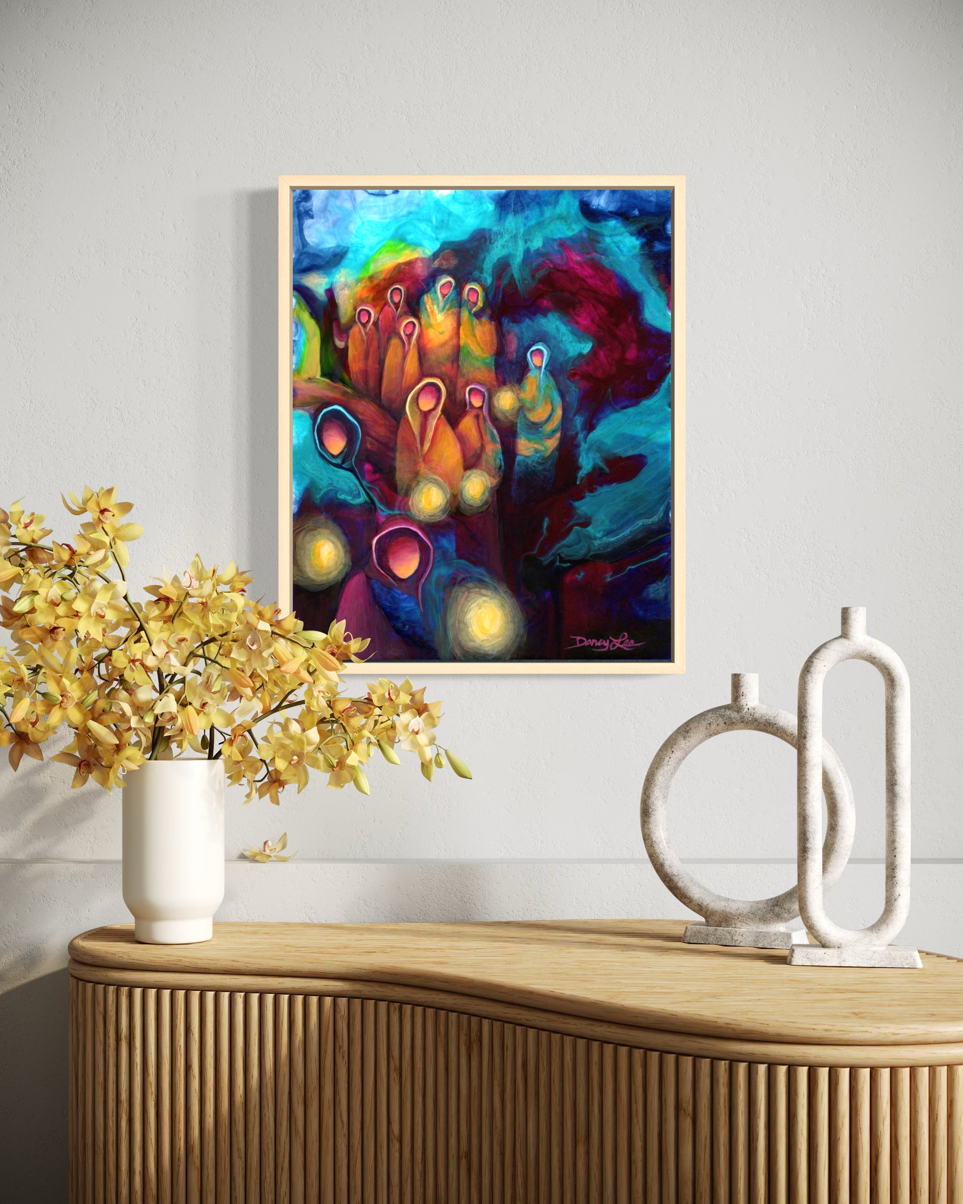 Though the original has found its forever home, its spirit lives on through fine art reproductions — each crafted to preserve the vibrancy, symbolism, and emotional resonance of the piece. Prints are available in framed canvas and museum-grade paper, and are carefully produced, inspected, and shipped by my trusted fine art printer to ensure lasting beauty and exceptional quality.